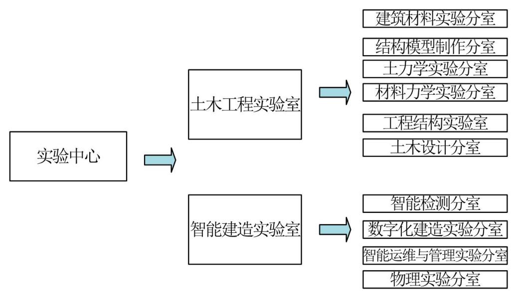 截至2022年,“土木工程实验室”总建筑面积达到3453㎡,仪器设备653台件,总价值1396.23万元。“土木工程实验室”由建筑材料分室、工程检测分室、基础力学分室、土力学分室、流体力学分室、材料力学分室、工程结构分室、虚拟仿真分室、大学物理分室、建筑物理分室、建筑构造分室、建筑模型分室构成。