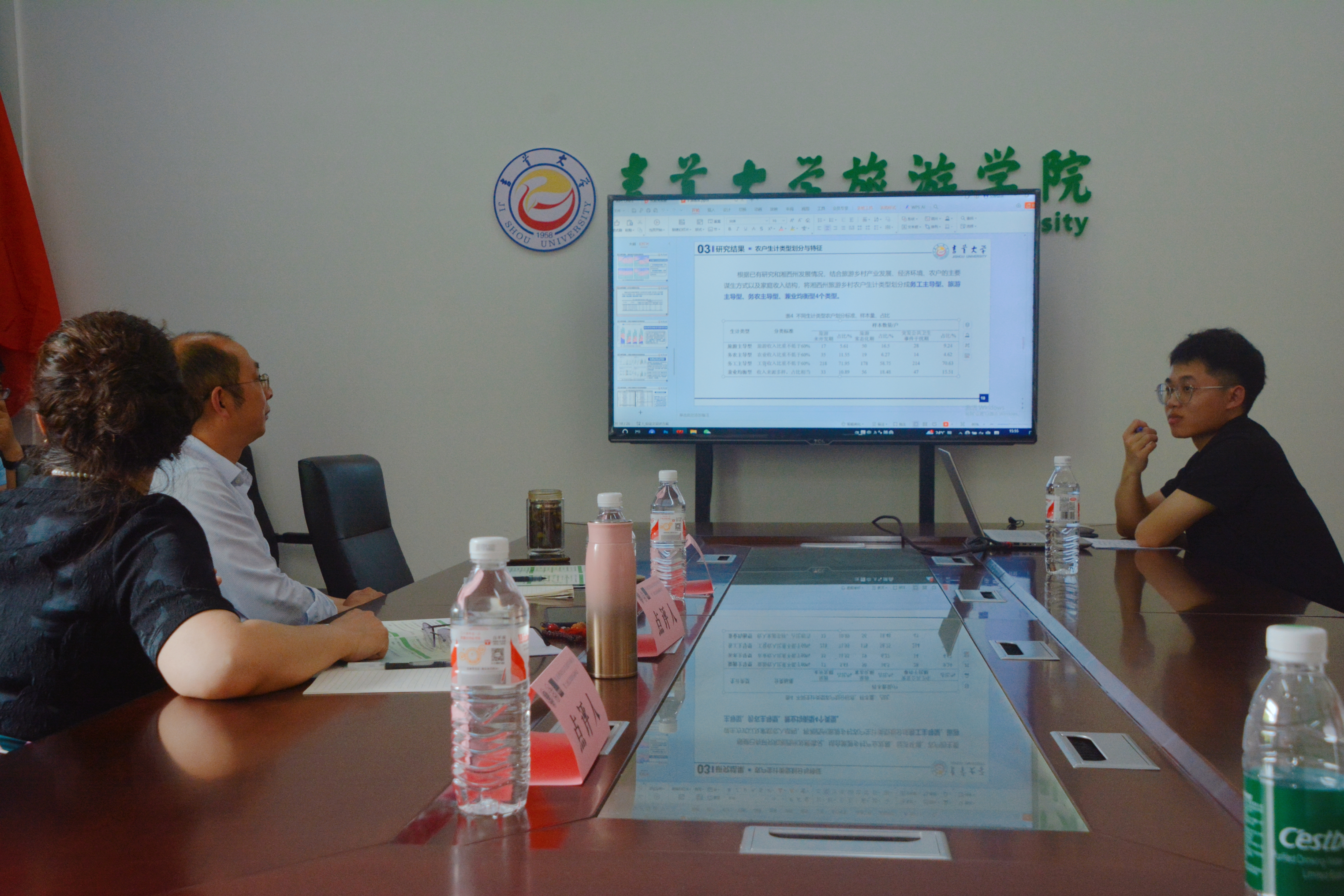 2023级风景园林硕士唐金钰作了题为《疫情干扰下的景区农户生计韧性演变分异特征及障碍因素—以中国武陵源风景名胜区为例》的报告,通过构建“韧性评估-障碍诊断”模型,揭示了后疫情时代旅游社区农户生计系统的动态演变特征,深入剖析了疫情对武陵源风景名胜区农户生计的影响。