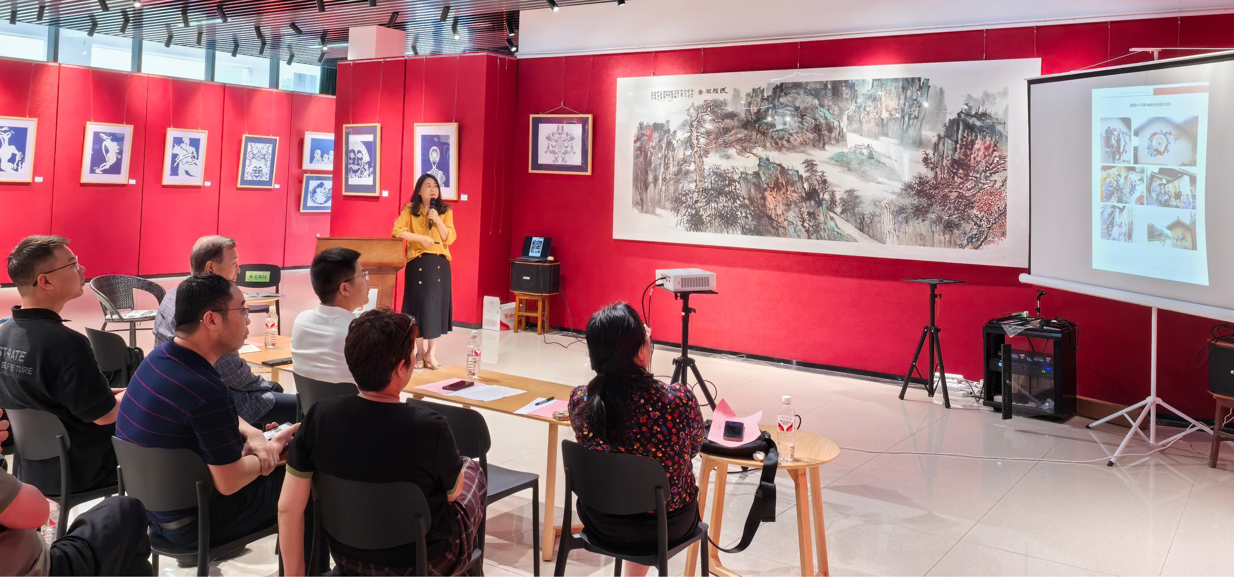 接着,qy球友会美术公司经理李婷婷教授分享了《艺术助力乡村振兴案例》。她简要介绍了美术公司在湘西十八洞村墙绘项目、张家界罗水村“美丽屋场”景观改造等校地合作的成果,展示了艺术如何助力乡村形象提升和文化振兴。